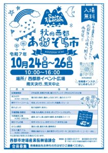 そんな中、10月24日(金)、25日(土)、26日(日)の3日間、西都原イベント広場で西都市地場産業振興協議会主催の物産展「秋の西都あおぞら市」が開催されます。
